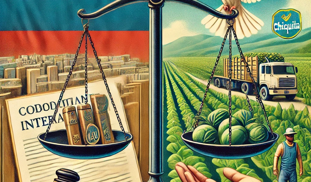 The words musa acuminata and musa balbisiana may sound unfamiliar to most people, yet they are among the most popular foods worldwide. They refer to the two most consumed types of bananas. Everyone has eaten one of these at least once in their lifetime. Nowadays, the banana market is massive: the central exporting region is South America, accounting for 14.5 million tonnes in 2022, and the central importing region is the European Union, with around 5 million tonnes (26.7%), followed by the United States (4 million tonnes – 21.7%).[1] Moreover, the market represents USD 140.84 billion in 2024, which makes it the most important fruit market.[2] One of the economic giants sharing in this activity is known for their blue stickers, their corporate mascot, and their advertising campaigns: Chiquita Brand International (also called “Chiquita” or “Chiquita Brands”). Such a corporation is so implemented in the countries where it produces bananas that it becomes a non-state actor in internal politics, peace, and conflict processes.