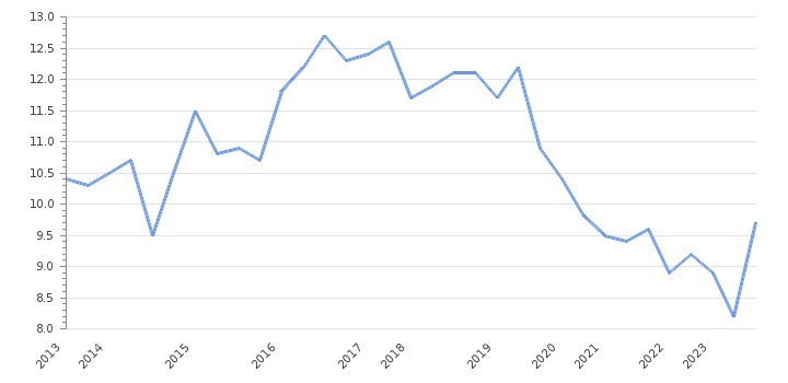 Figure 2: Iranian unemployment rate over the years.