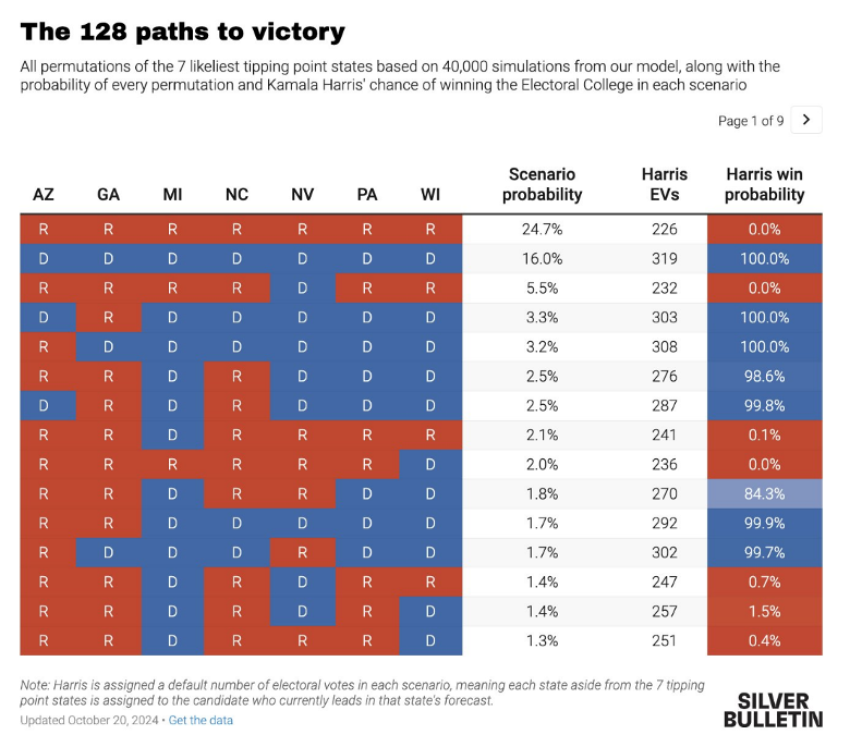 Silver, N. [@NateSilver538]. (2024, October 20). A sweep of the swing states is more likely than people might assume… https://x.com/NateSilver538/status/1848060370268938538